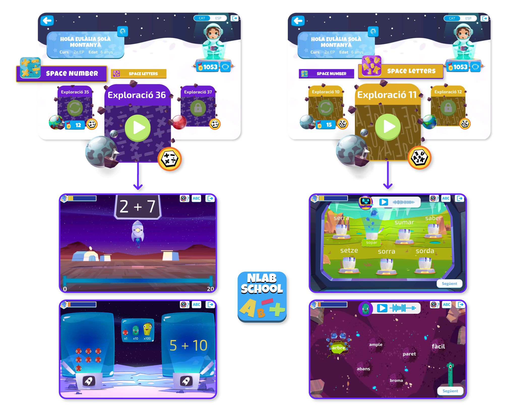 Amb NLAB School, cada infant aprèn al seu ritme. El sistema adapta automàticament les activitats de processos lectors i numèrics segons el progrés i perfil de l’alumne.